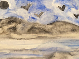 Gosto de ficar olhando o caminho das manchas no papel de aquarela